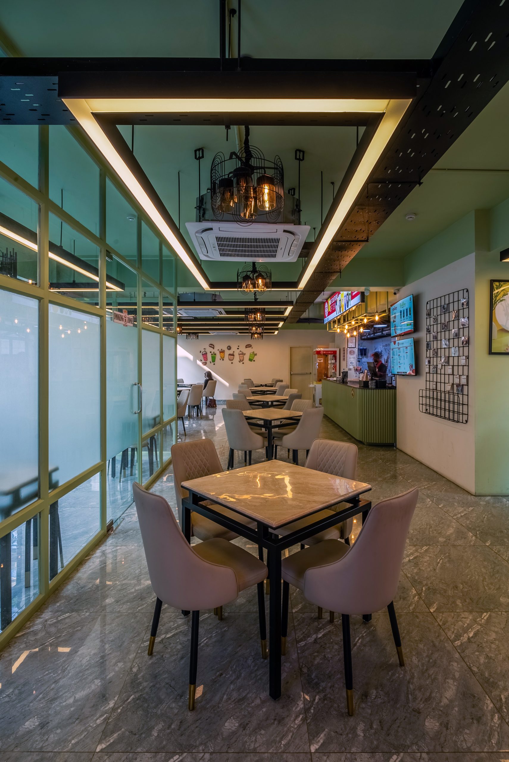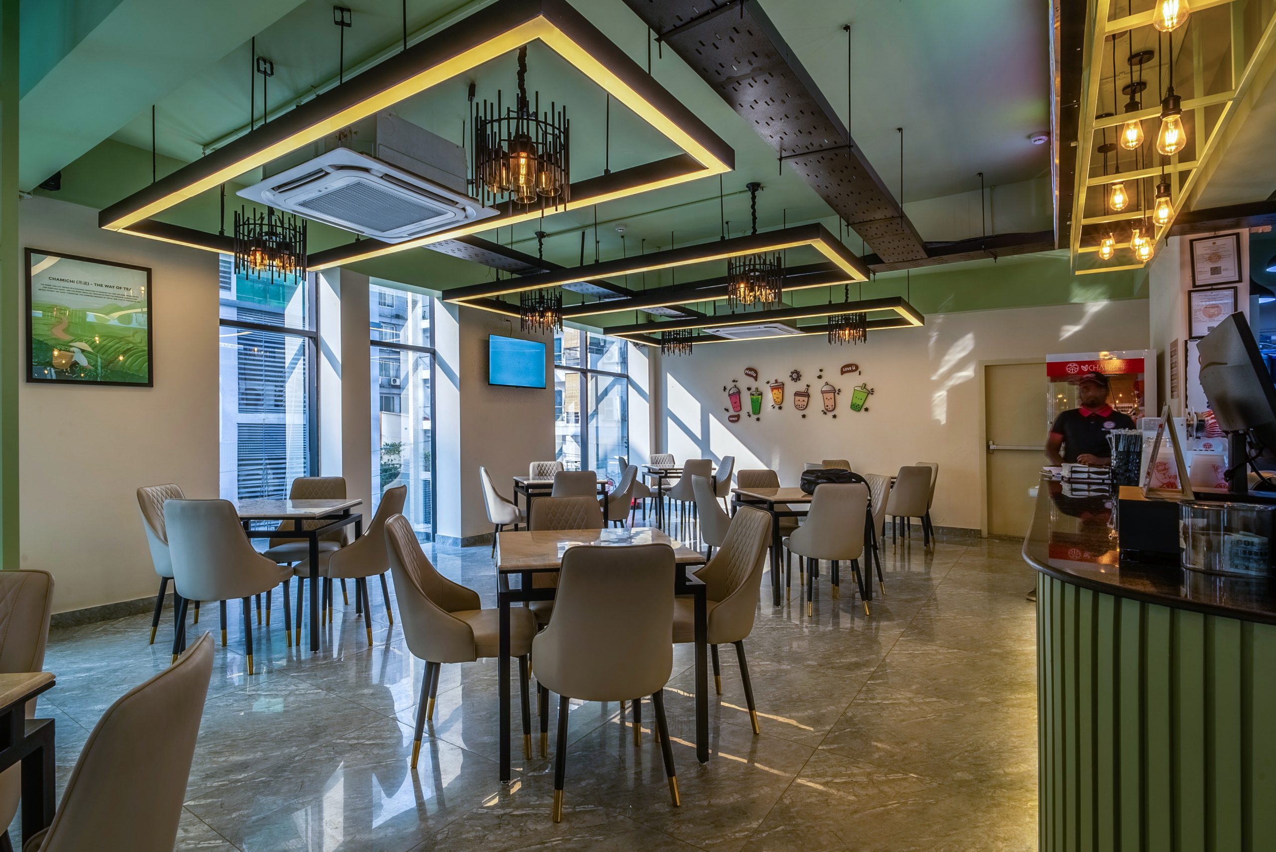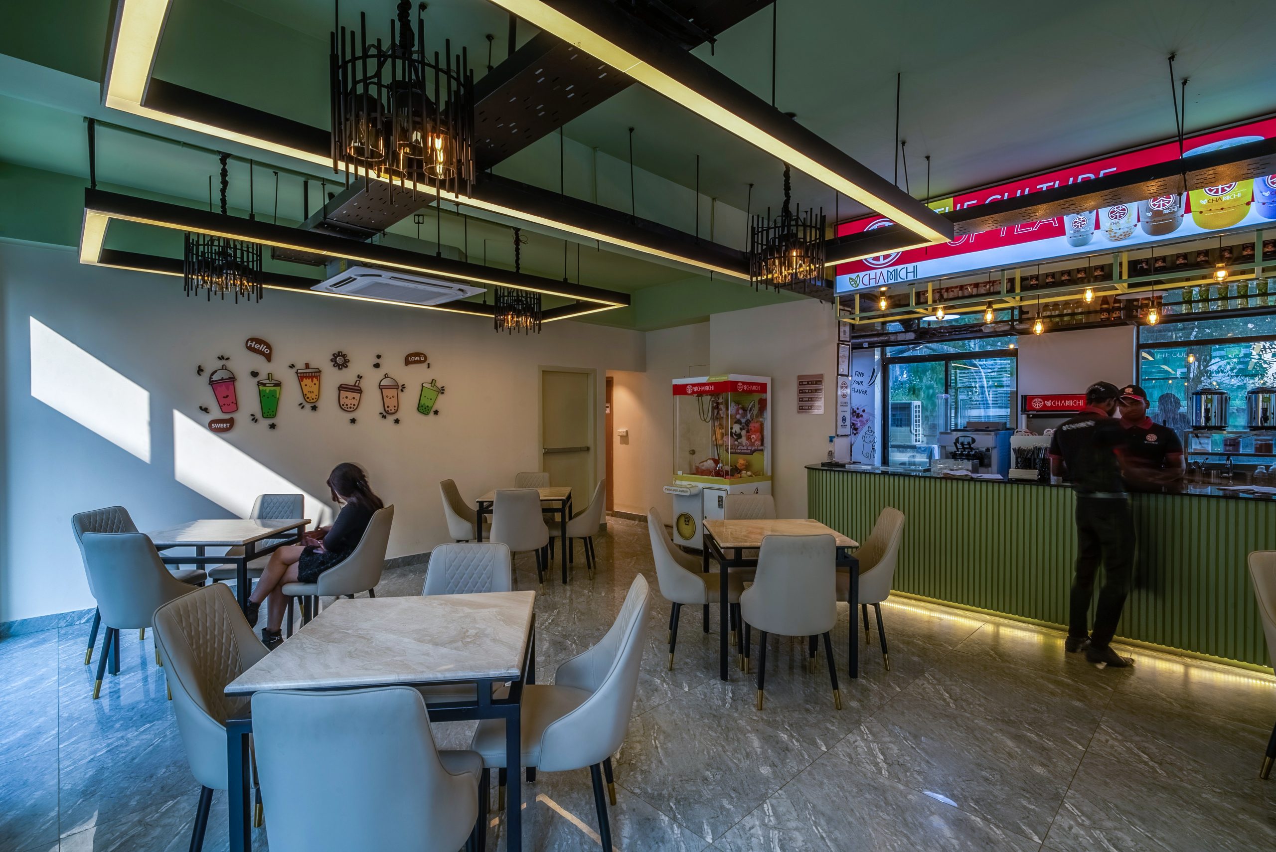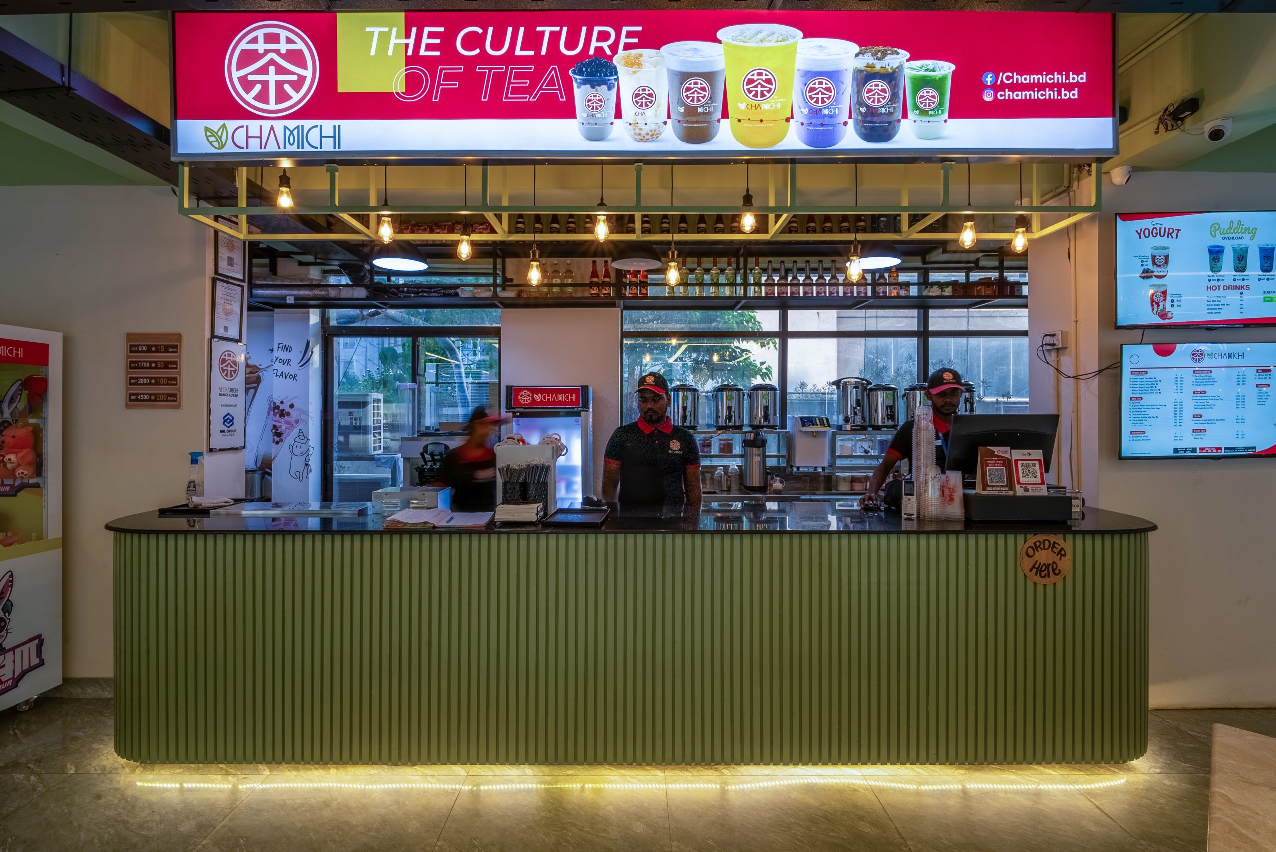 Type: Interior (Bubble tea shop) Status: CompletedYear: 2024Design Team: Nur Mohammad, Md Khairul IslamPhotographs: Mud canvasLocation: Banani, Dhaka, BangladeshSize: 1400sft